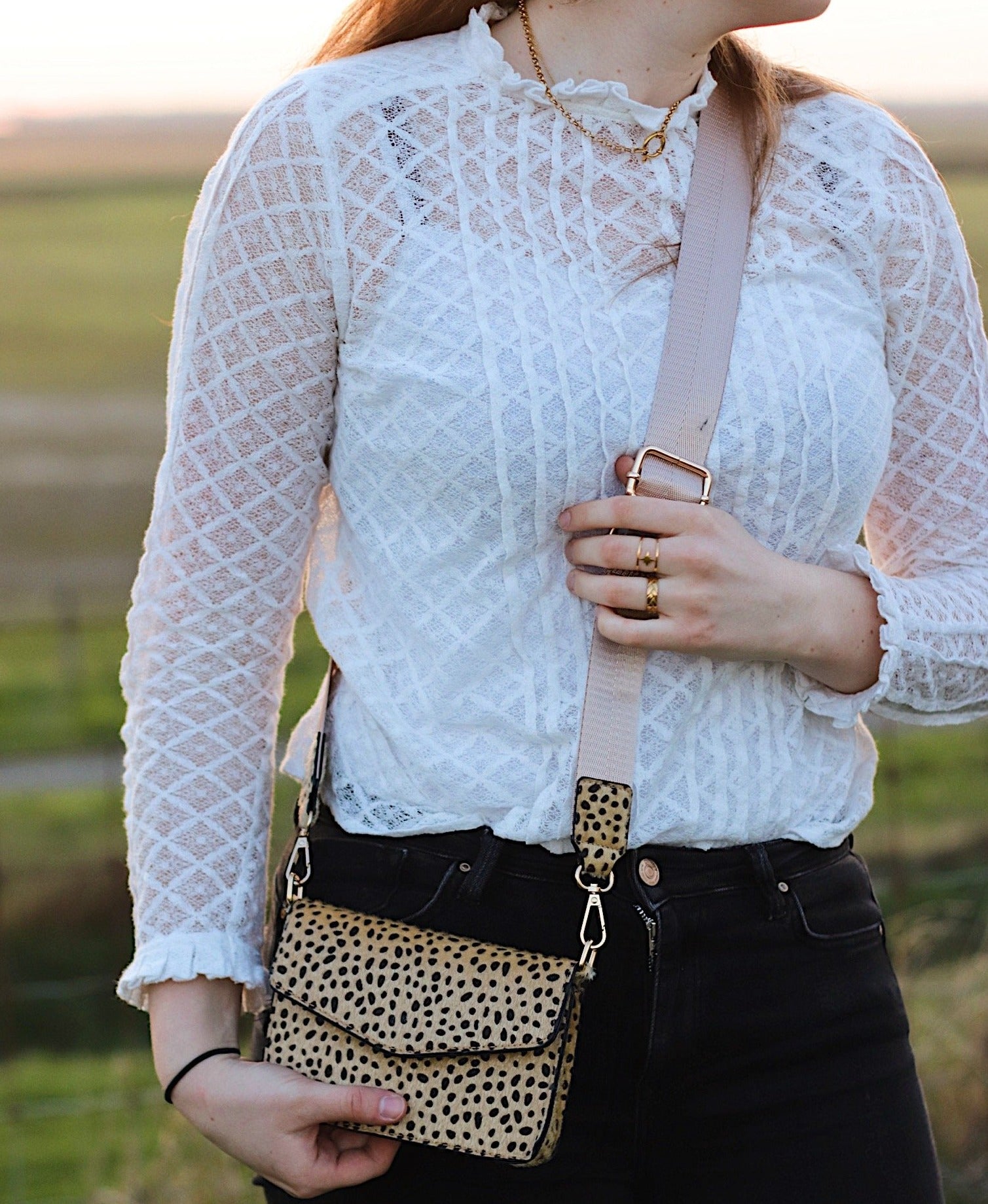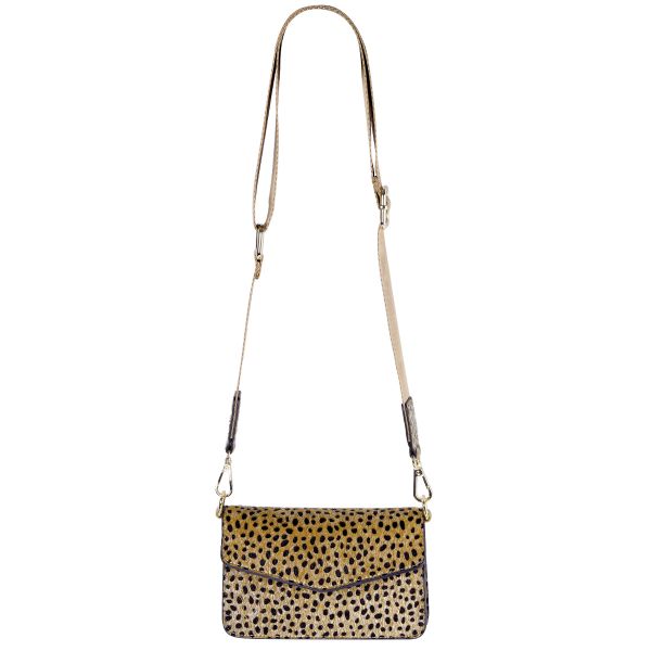 Dit tasje met dierenvlekjes print is onze favoriet! De schouderband is verstelbaar en afneembaar. Een