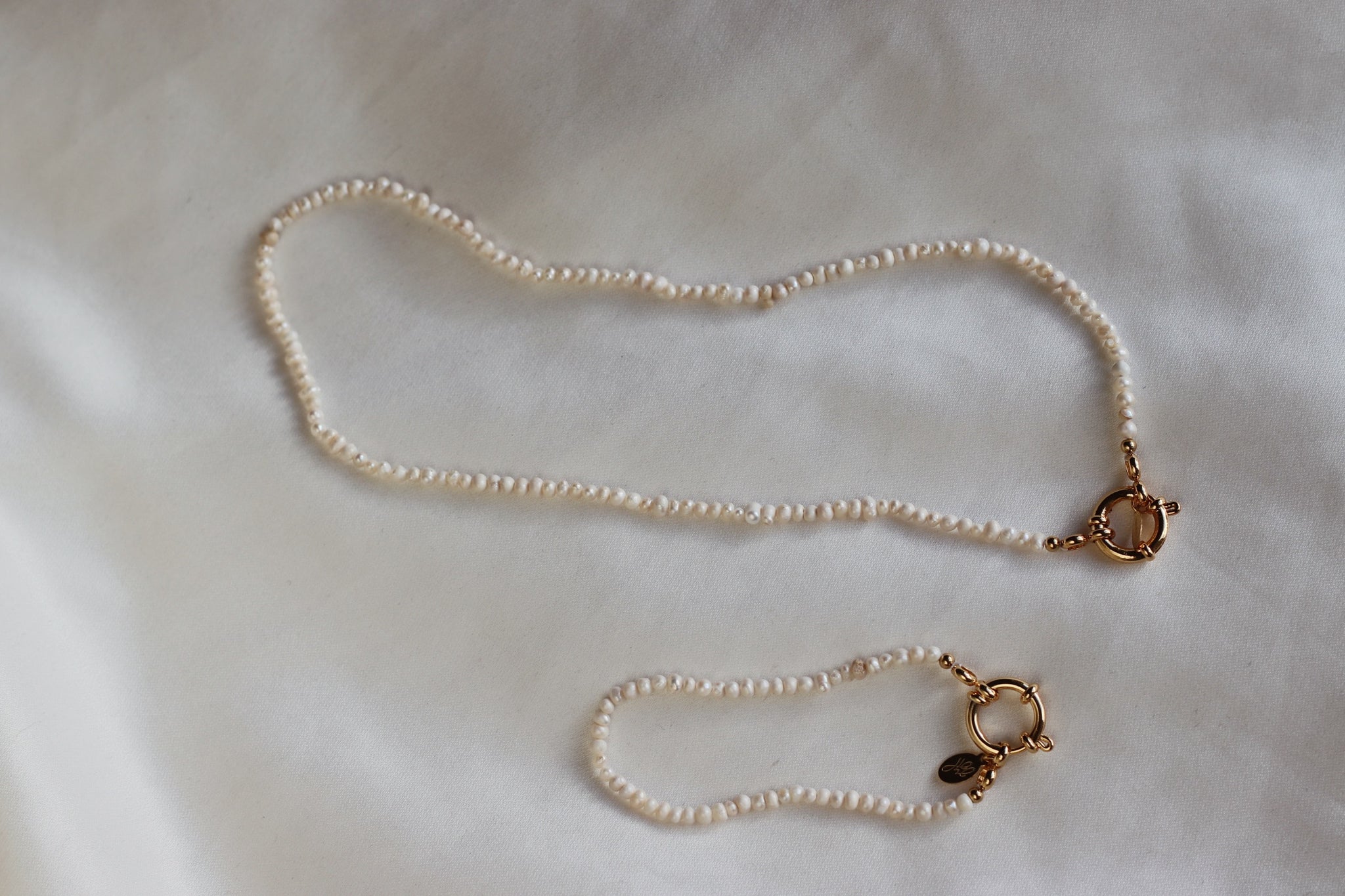 Deze leuke armband is gemaakt van witte glaskralen en Stainless steel. Super tof te combineren met onze white beads ketting! Verkrijgbaar in zilver en goud.