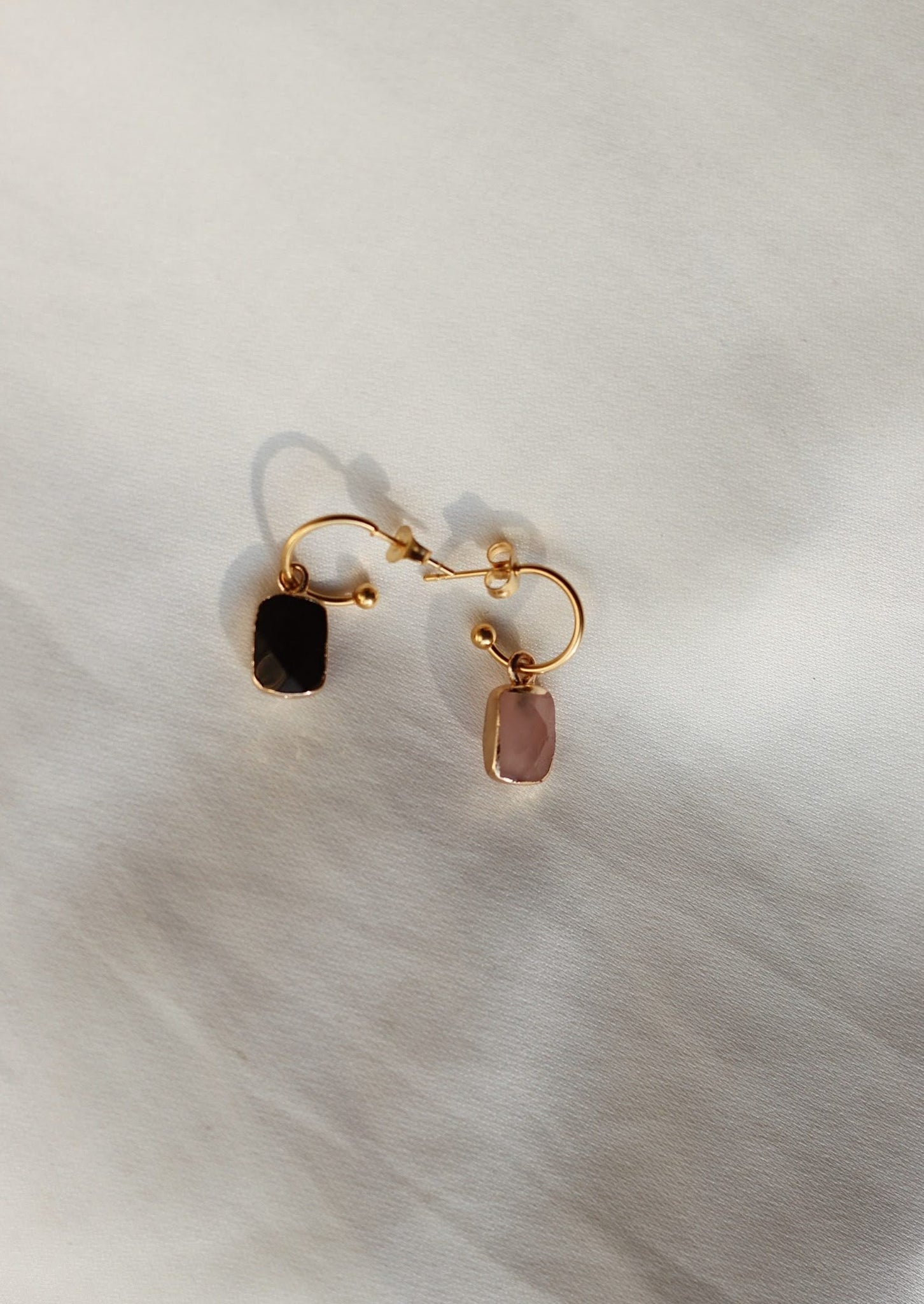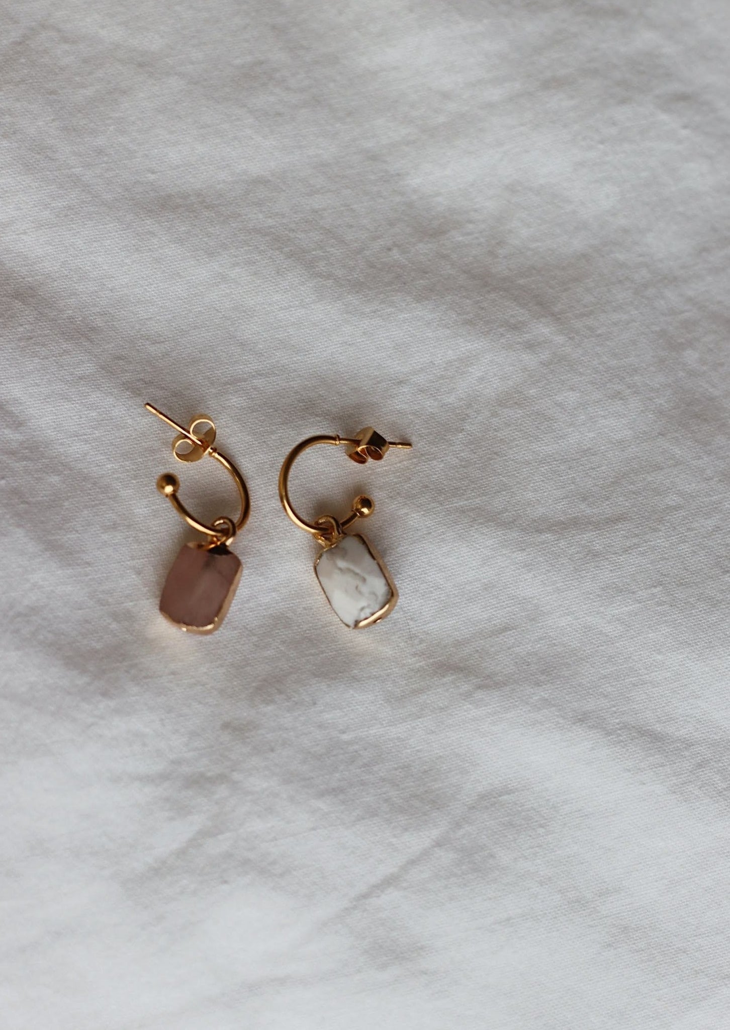 Deze gave oorbellen zijn gemaakt van stainless steel en de hangers van natuursteen. Super leuk te combineren met onze natuursteen kettinkjes! Verkrijgbaar in de kleuren: marmer white, pink en black.