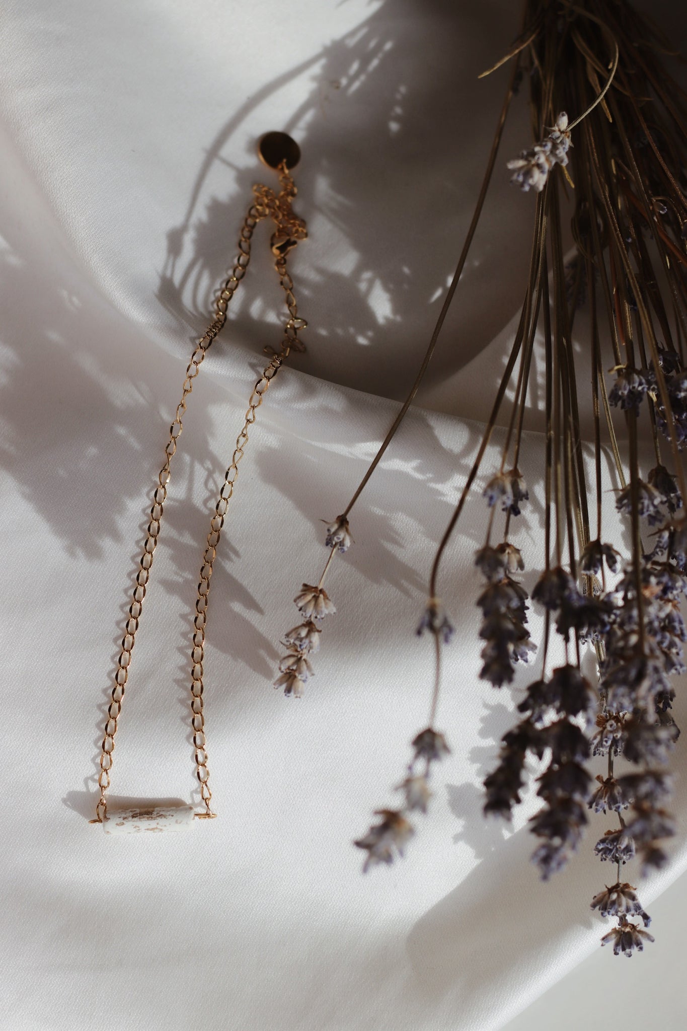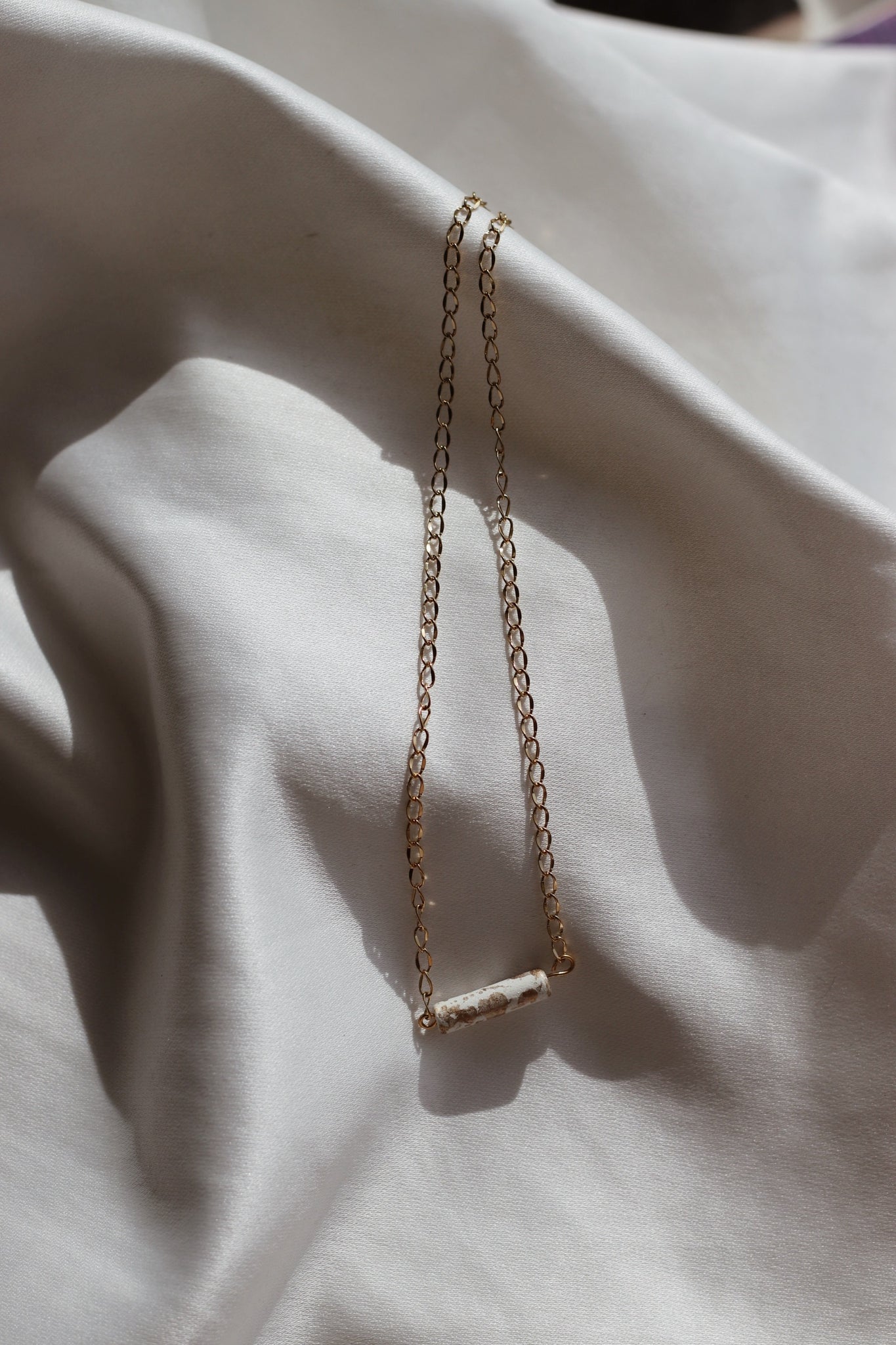 Deze subtiele ketting is gemaakt van stainless steel met een hanger van Grieks keramiek, in de kleur wit met subtiele gouden vlekjes. Deze ketting hebben we ook in een mooie rode kleur!