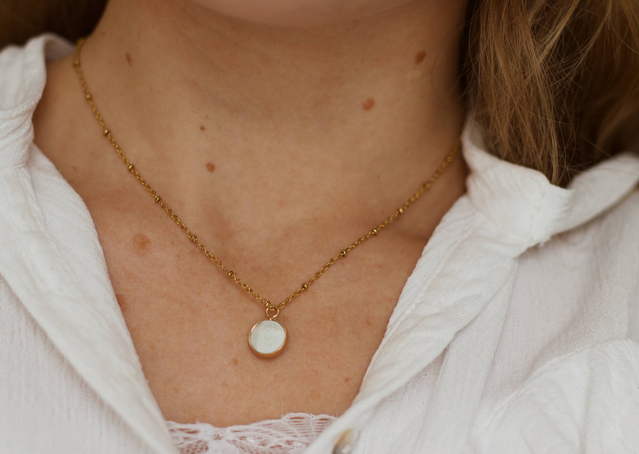 Ketting van stainless steel met prachtige marmer hanger. Leuk te combineren met de marmer oorbellen!