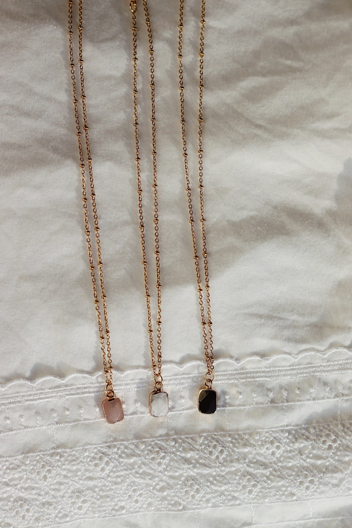 Deze te gekke kettingen zijn gemaakt van stainless steel en de hangers zijn gemaakt van natuursteen. Verkrijgbaar in 3 verschillende kleuren: marmer white, pink en black!