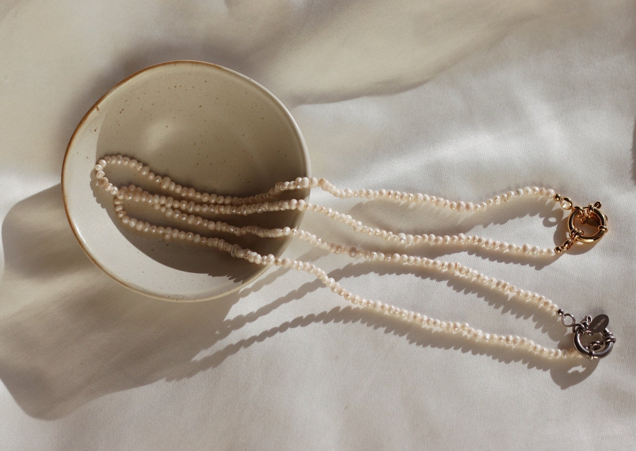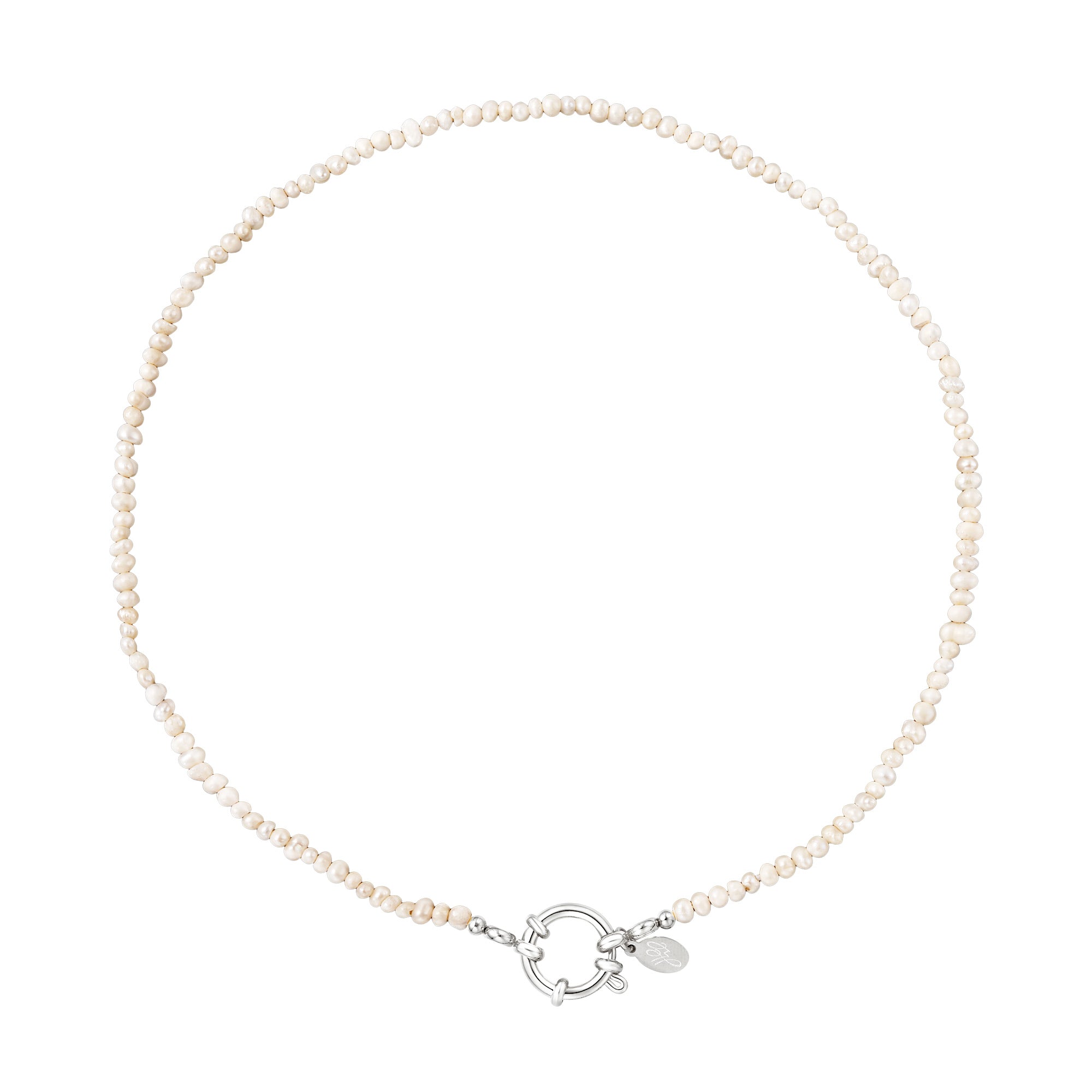 Deze leuke ketting is gemaakt van witte glaskralen en Stainless steel. Super tof te combineren met onze white beads armbandje! Verkrijgbaar in zilver en goud.