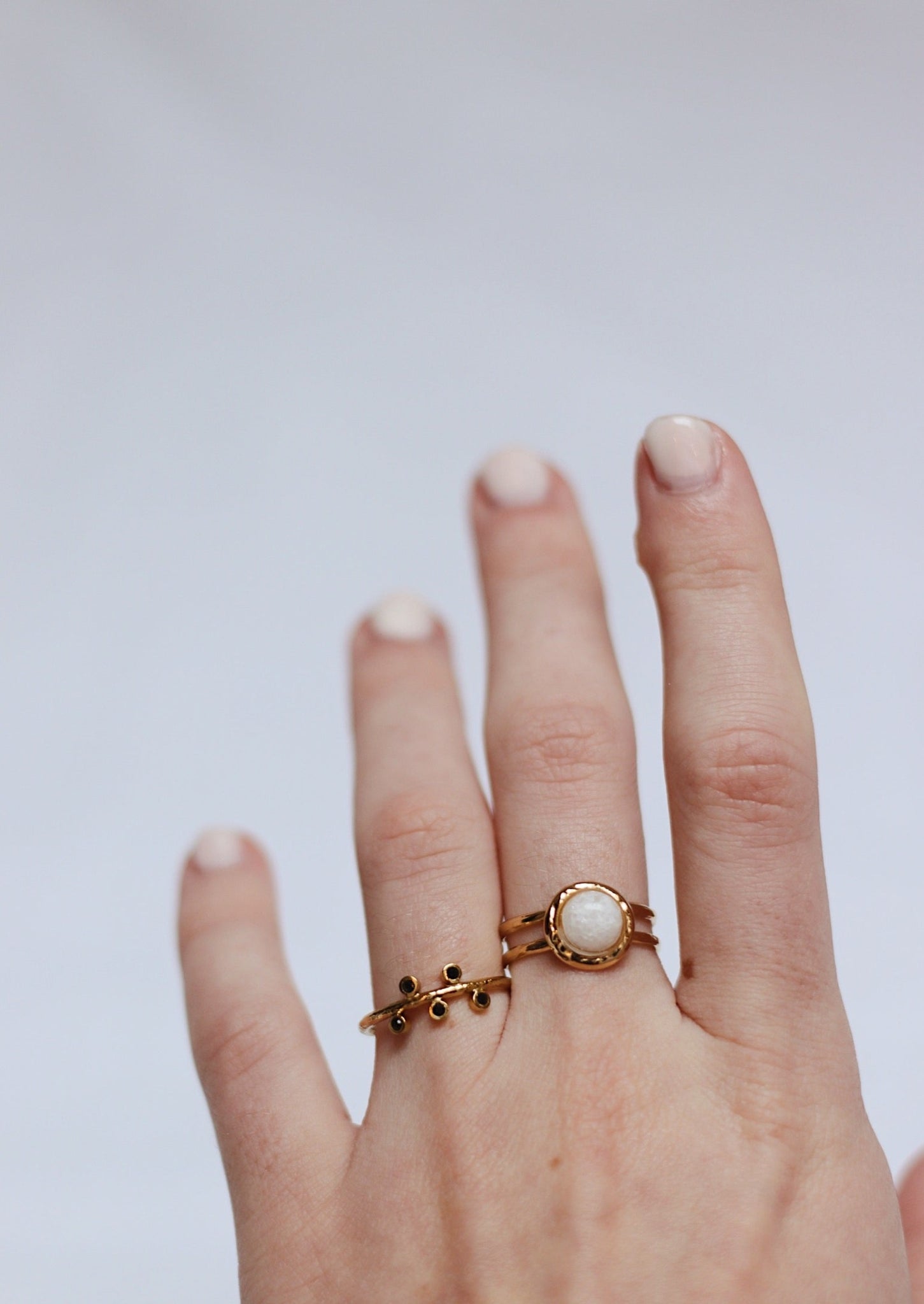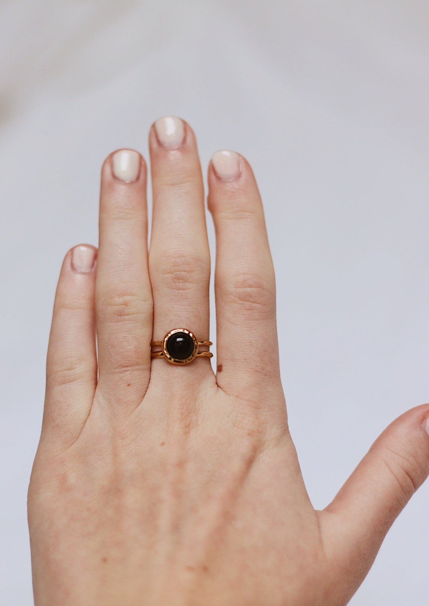 Deze mooie ring is gemaakt van stainless steel en heeft een dubbele laags ring met daar aan verbonden een mooie natuursteen. Verkrijgbaar in zwart en wit.