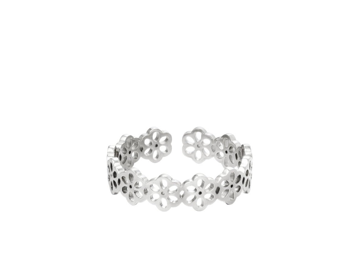 Onze vrolijke flower ring is heel leuk te combineren met onze andere ringen! De ring is verkrijgbaar in goud en zilver.
