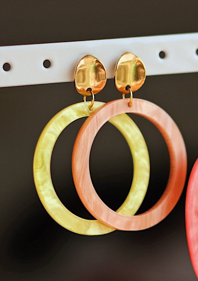 Deze leukerds zijn een stukje kleiner als onze statement oorbellen, en zijn dus een subtiele toevoeging om jou outfit compleet te maken! We hebben deze oorbellen in het white, yellow en peach pink.