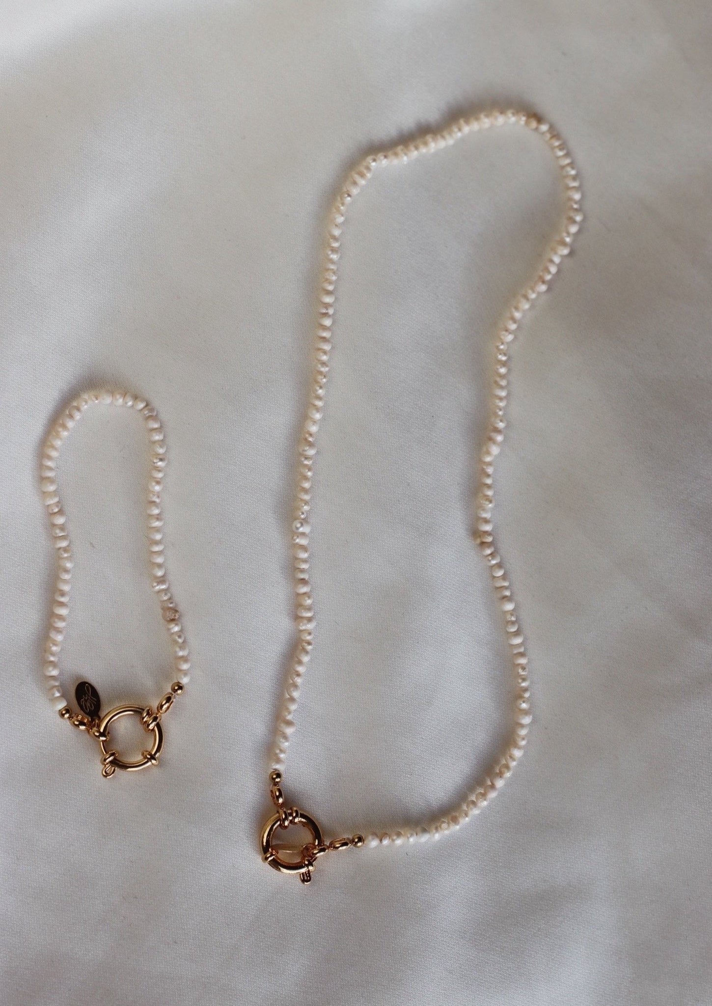 Deze leuke armband is gemaakt van witte glaskralen en Stainless steel. Super tof te combineren met onze white beads ketting! Verkrijgbaar in zilver en goud.